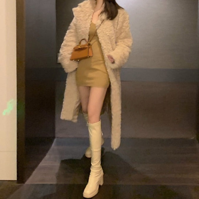 Women’s Autumn And Winter Furry Thickened Long Sleeve Cardigan Coat