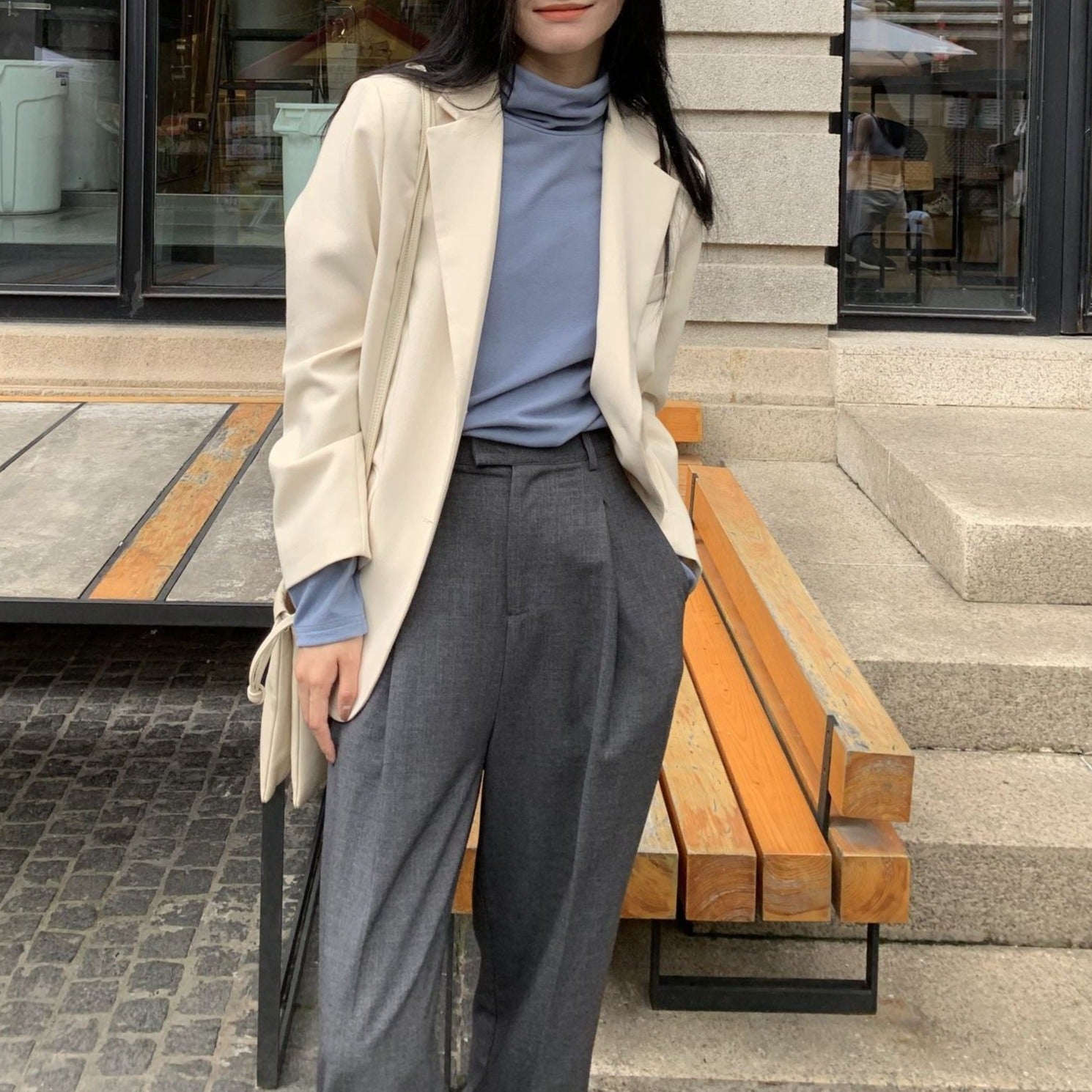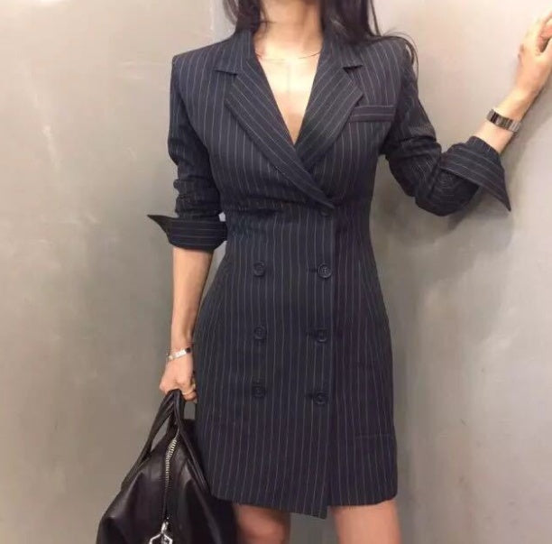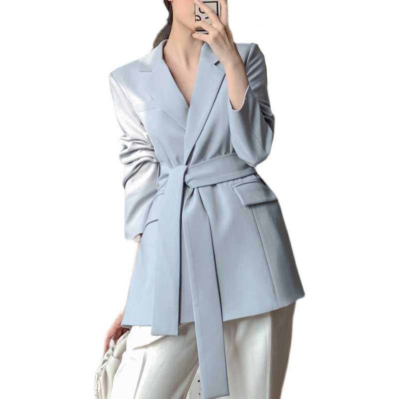 Blue-gray High Sense Of Loose Korean Temperament Suit Jacket Women