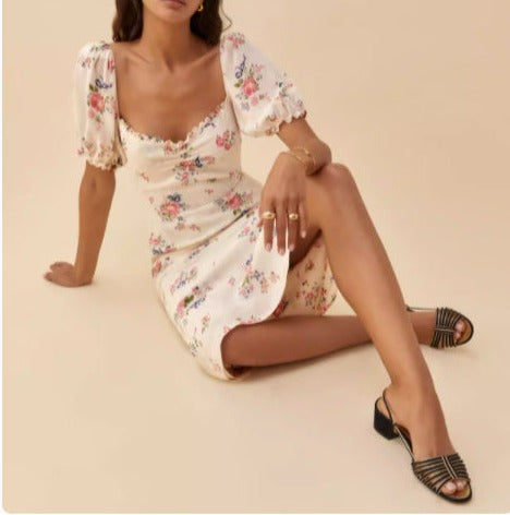 Summer New Niche Retro Sweet Little Floral Dress
