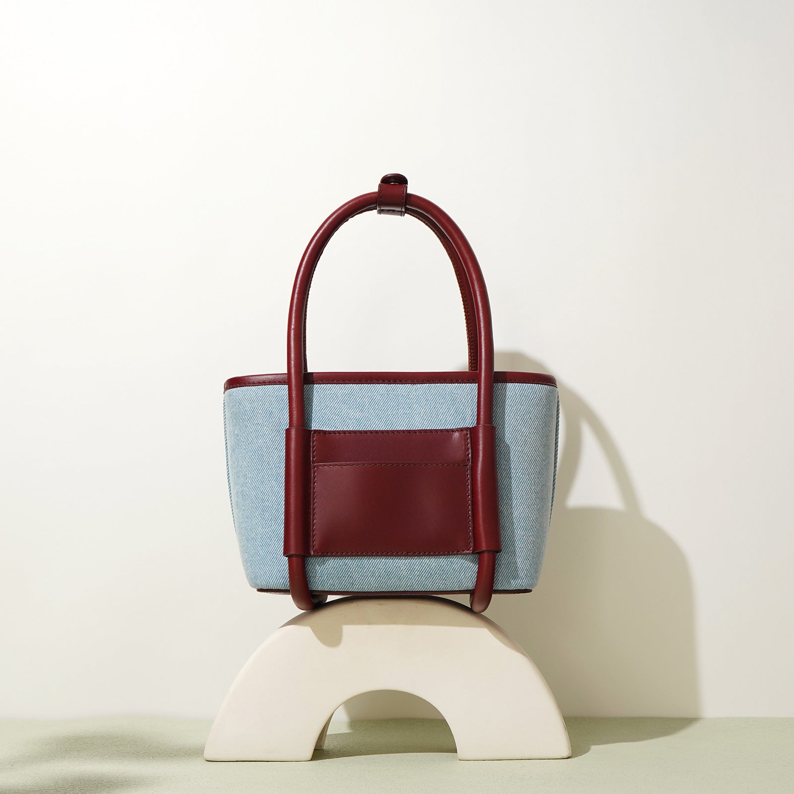 Top Layer Cowhide With Denim Cloth Single Shoulder